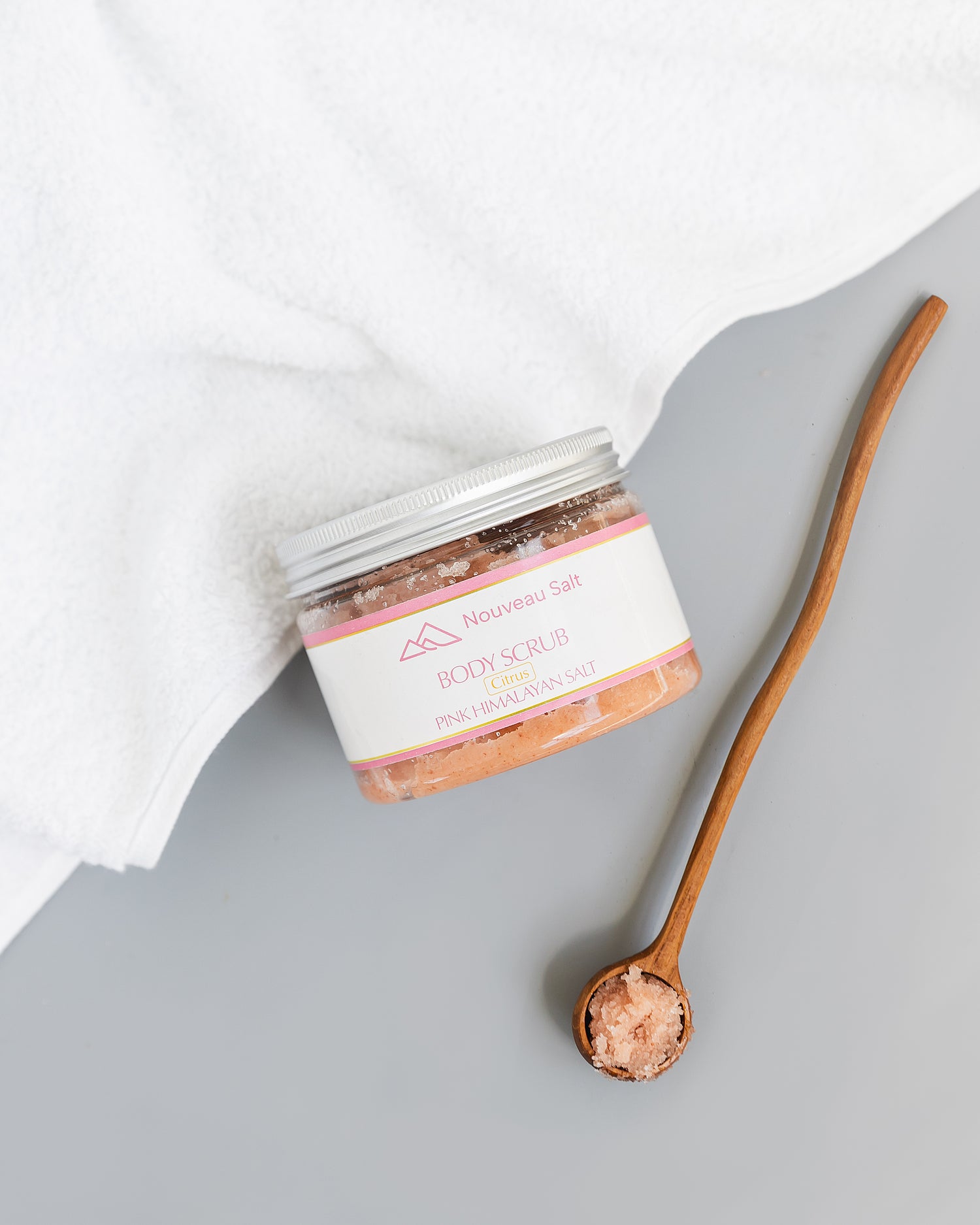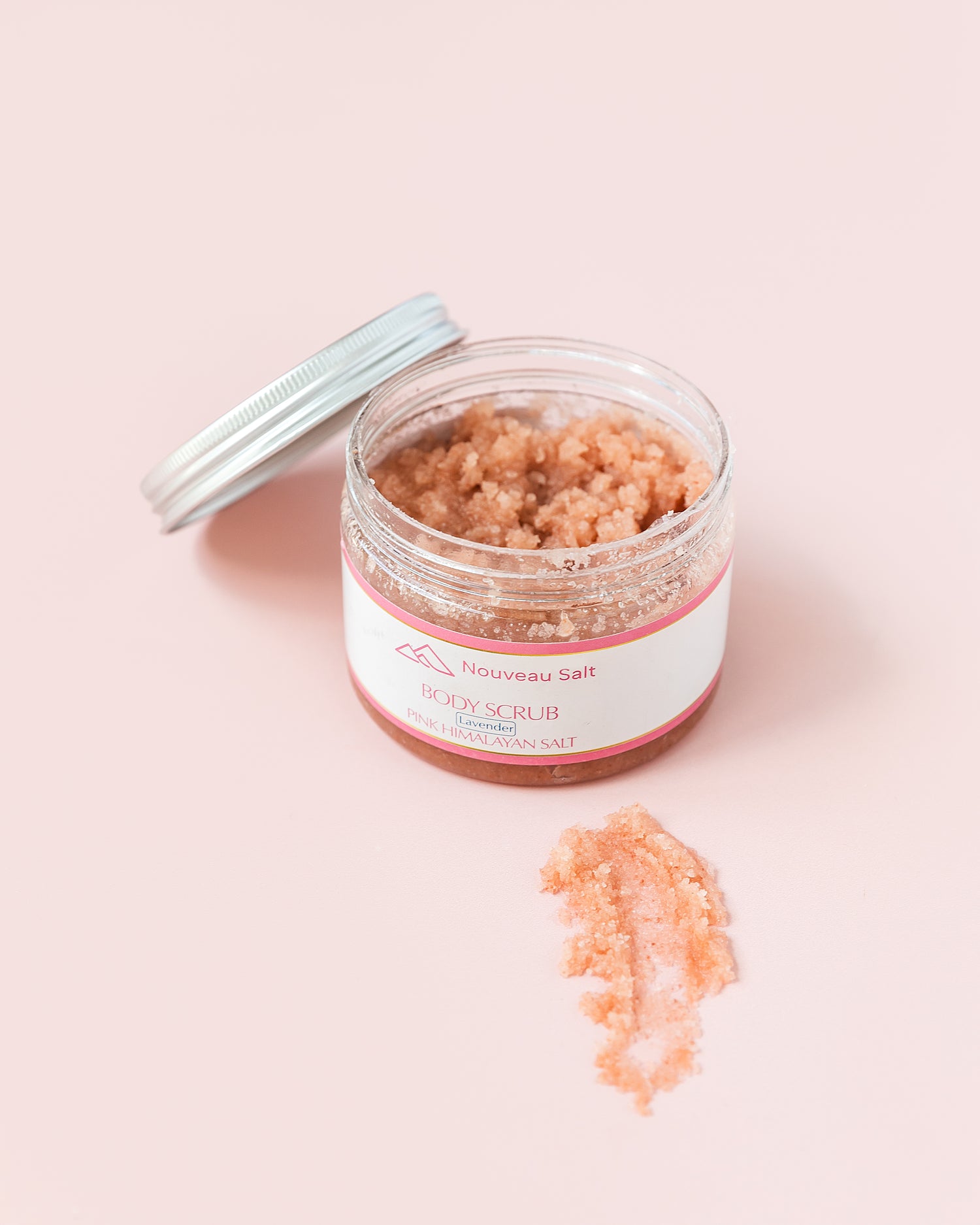 All natural body scrub crafted with pink Himalayan salt and essential oils infused with scented flavors to improve skin texture with a cleaner, smoother, healthier looking complexion.